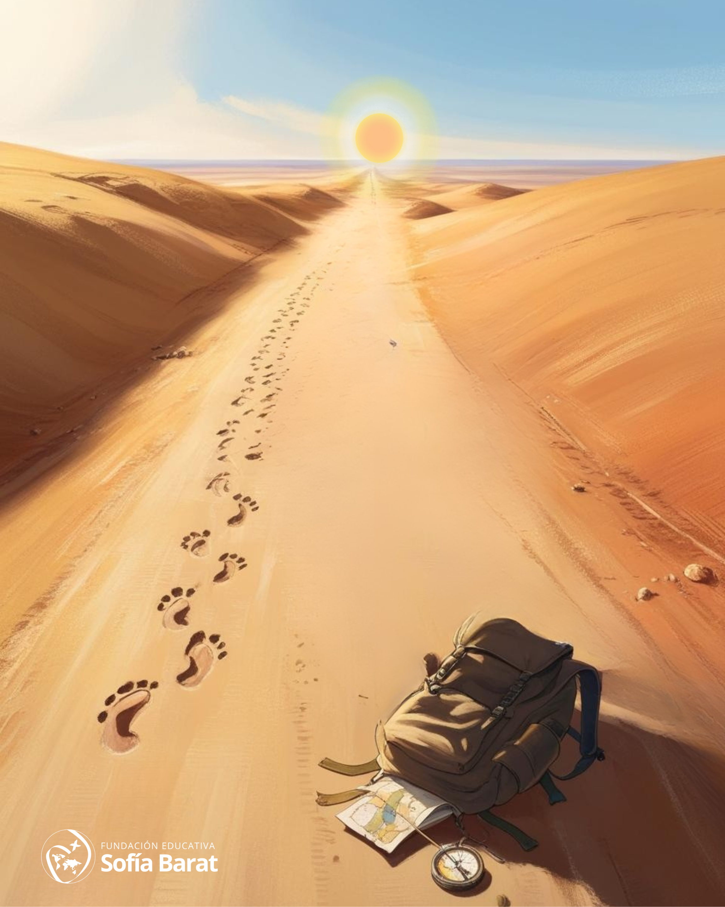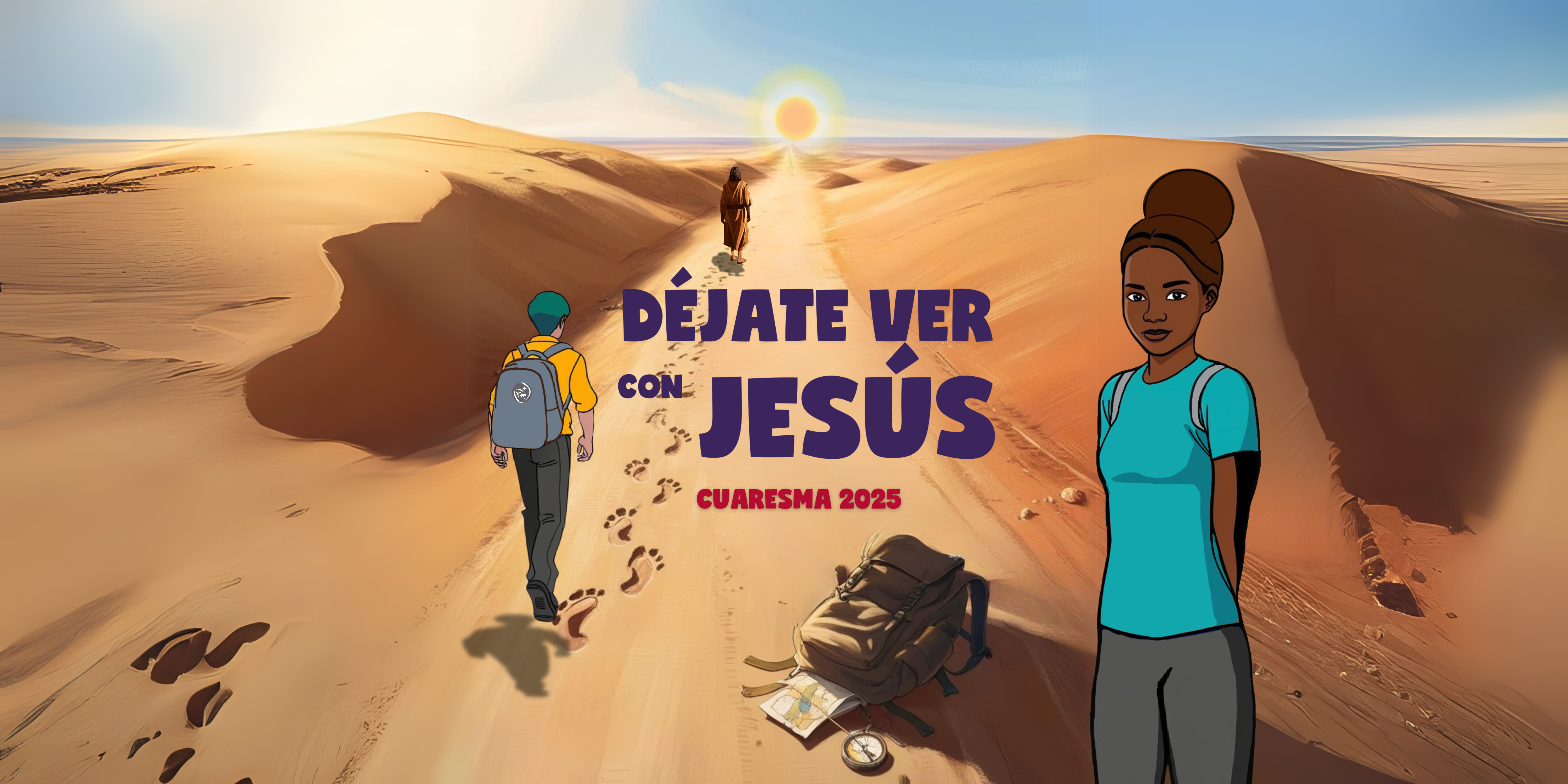 En el camino encontramos sus huellas. Las huellas nos muestran los pasos de Jesús, su camino y su itinerario personal hacia la Pascua. En la mochila llevamos todo lo necesario para la travesía de la Cuaresma. Tendrás tiempo para ver qué es lo superfluo y que ya no necesitas, así como lo importante y necesario que deberás mantener. En la mochila abierta descubrimos un mapa y una brújula. Son dos herramientas que nos ayudan a no perdernos, sobre todo si el lugar que transitamos es desconocido. El camino nos lleva hacia la luz, hacia la Resurrección, hacia la vida, hacia la plenitud. La luz, Dios, guía nuestros pasos y Jesús nos muestra cuál y cómo es esa luz.